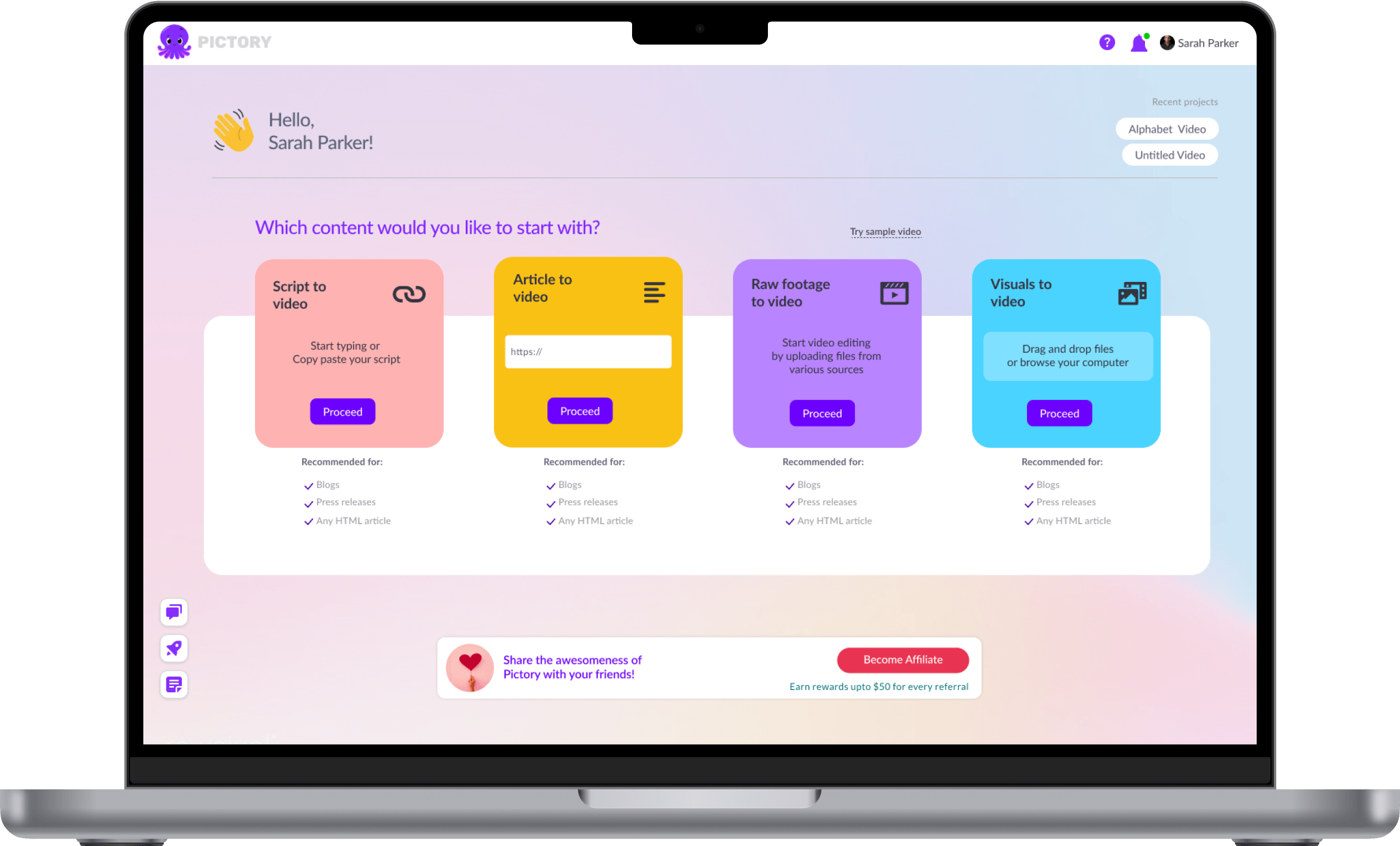 Video editing SaaS platform powered by A.I,that allows content creators to create, edit and share videos in minutes.