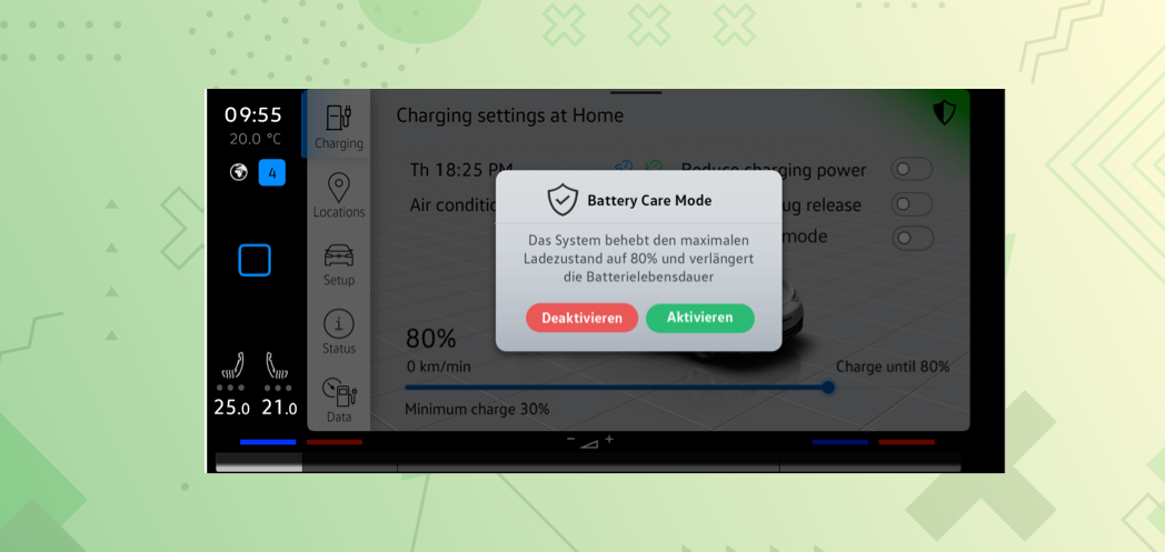 When the EV ( Electric Vehicle ) battery is charged to 80% only regularly, the battery life is extended.