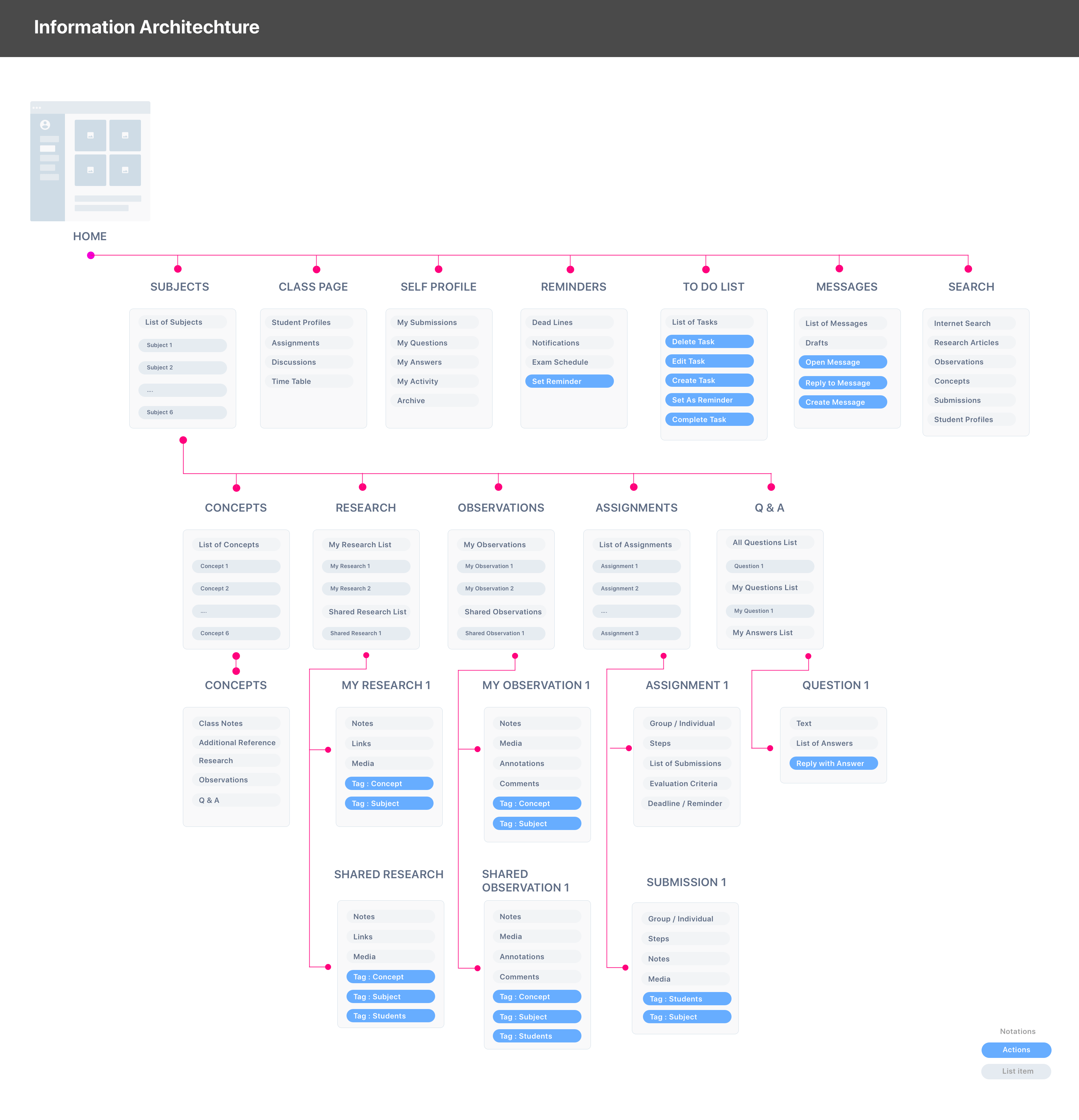 After gathering all the data, I had to wear my Information Architect hat to diffuse the data and give a meaning to it. I prepared heirarchial info-maps,