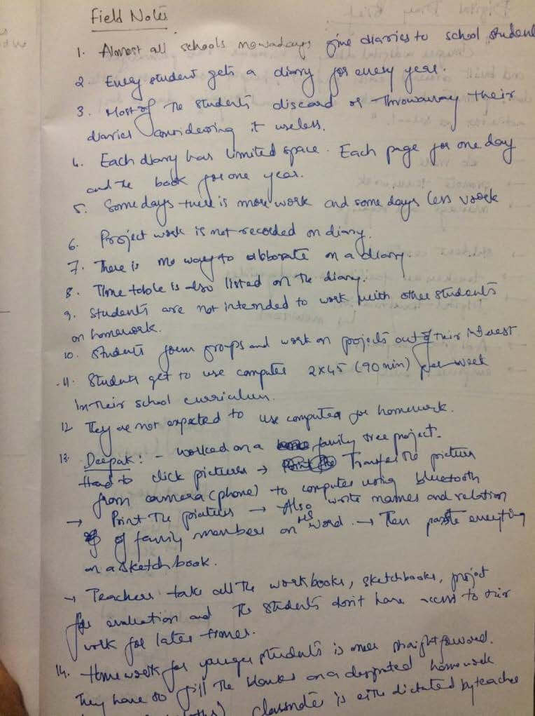 My field notes from the interaction with students, teachers and parents and daily planner in the diary