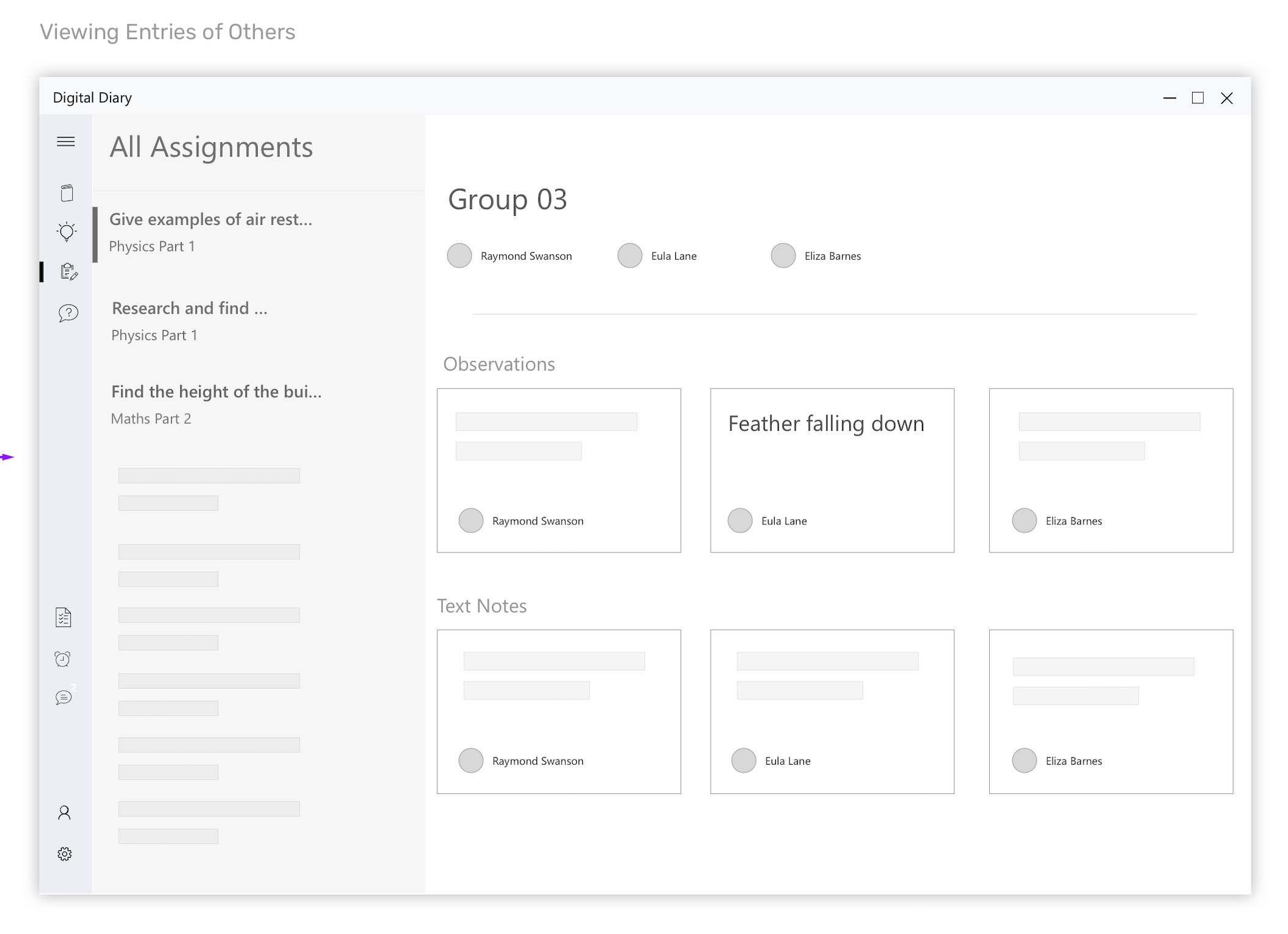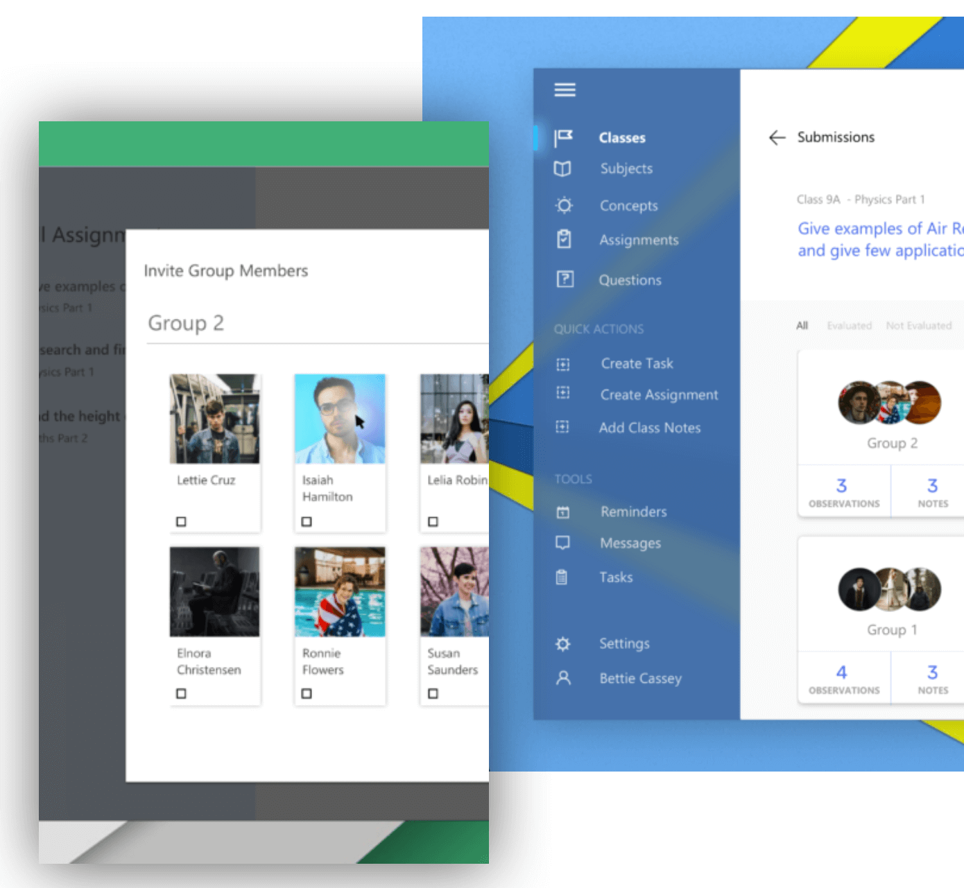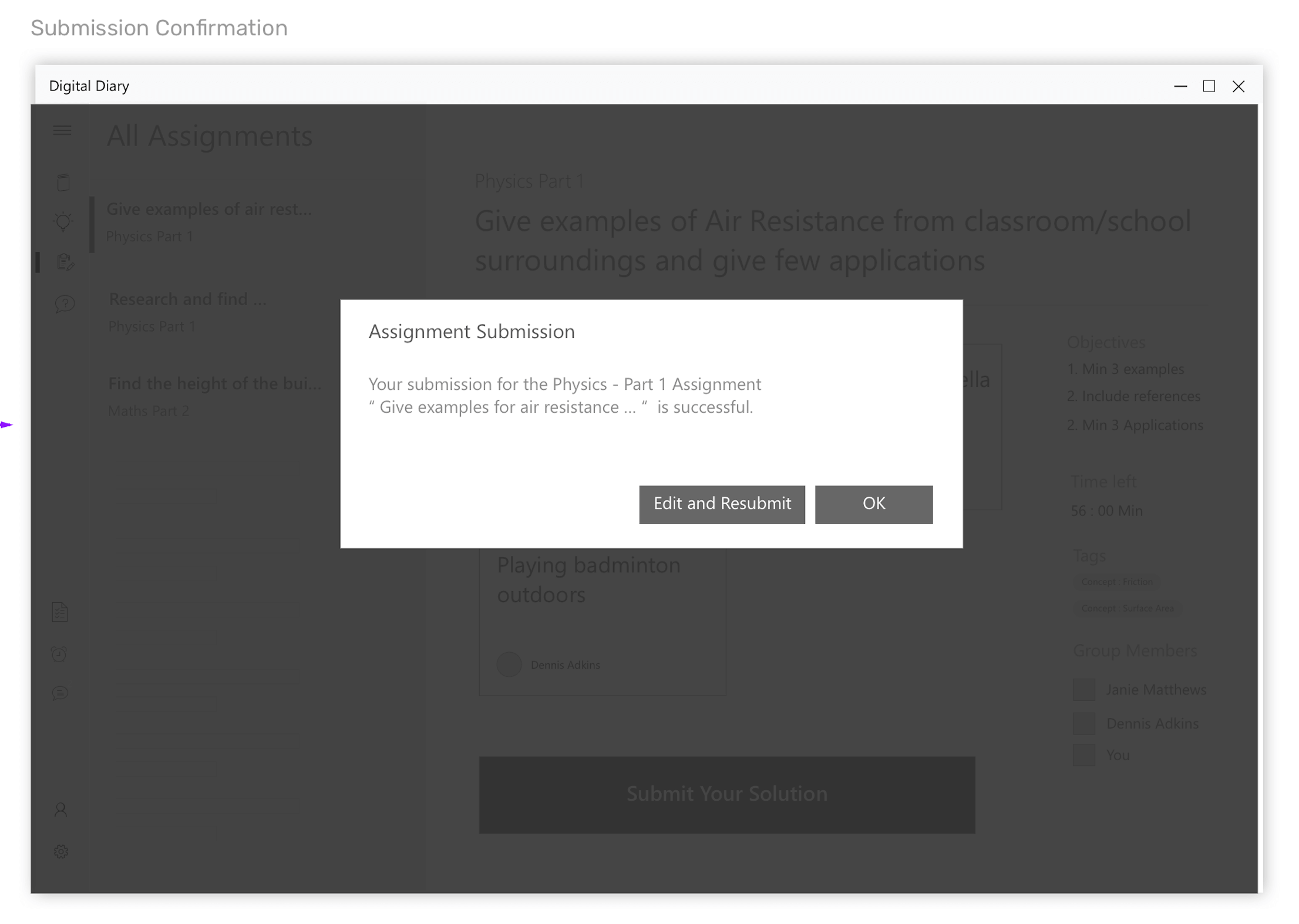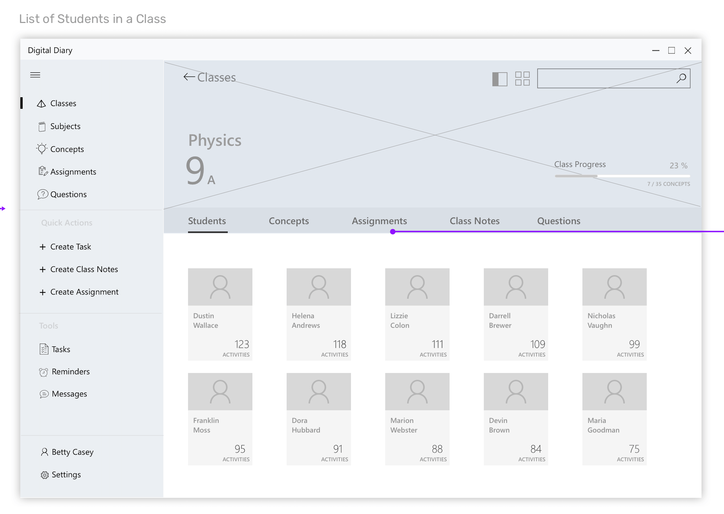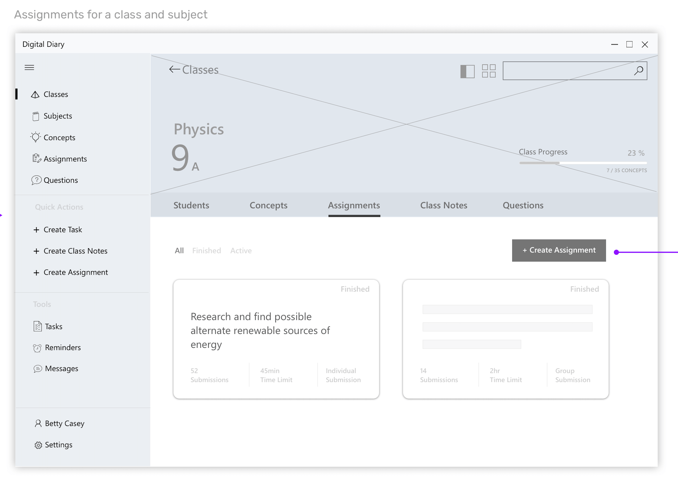 Wireframes for the scenario - Teacher giving an assignment to class