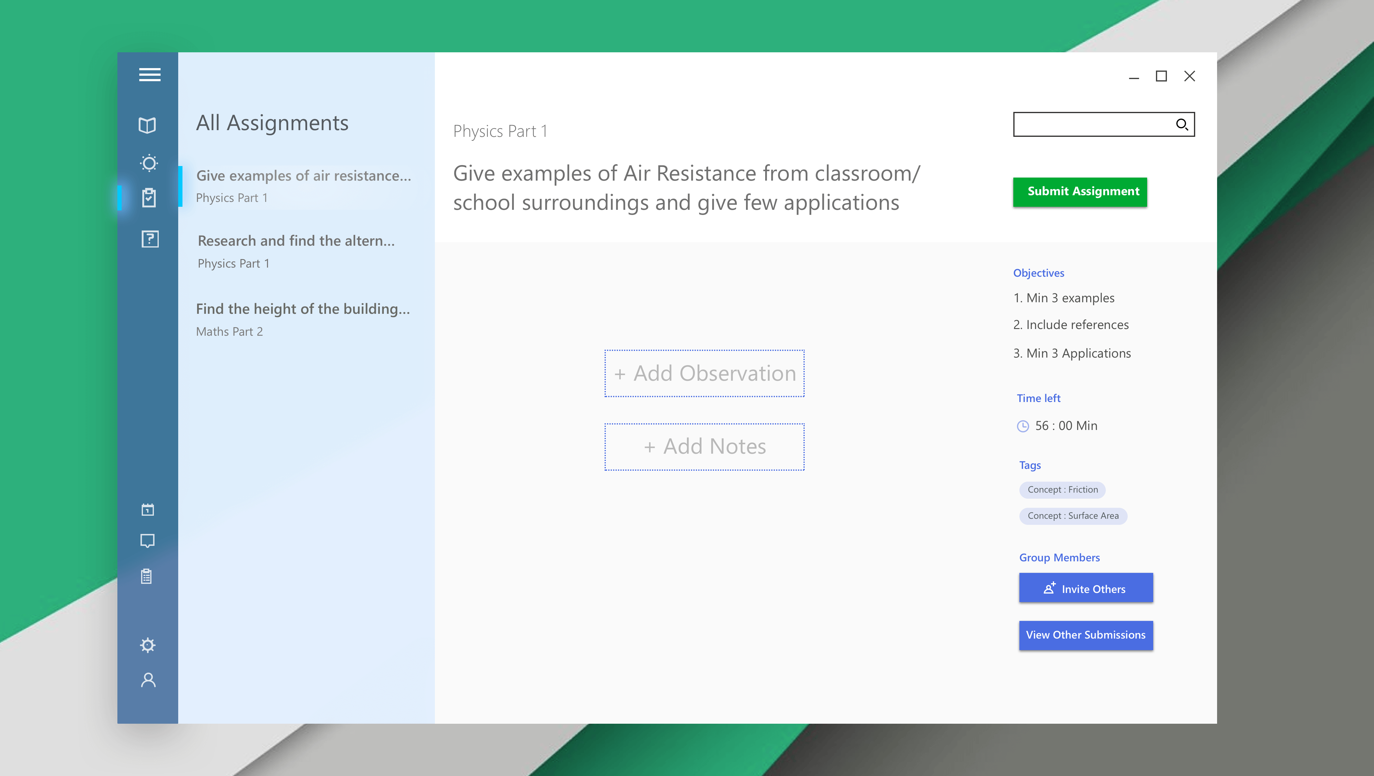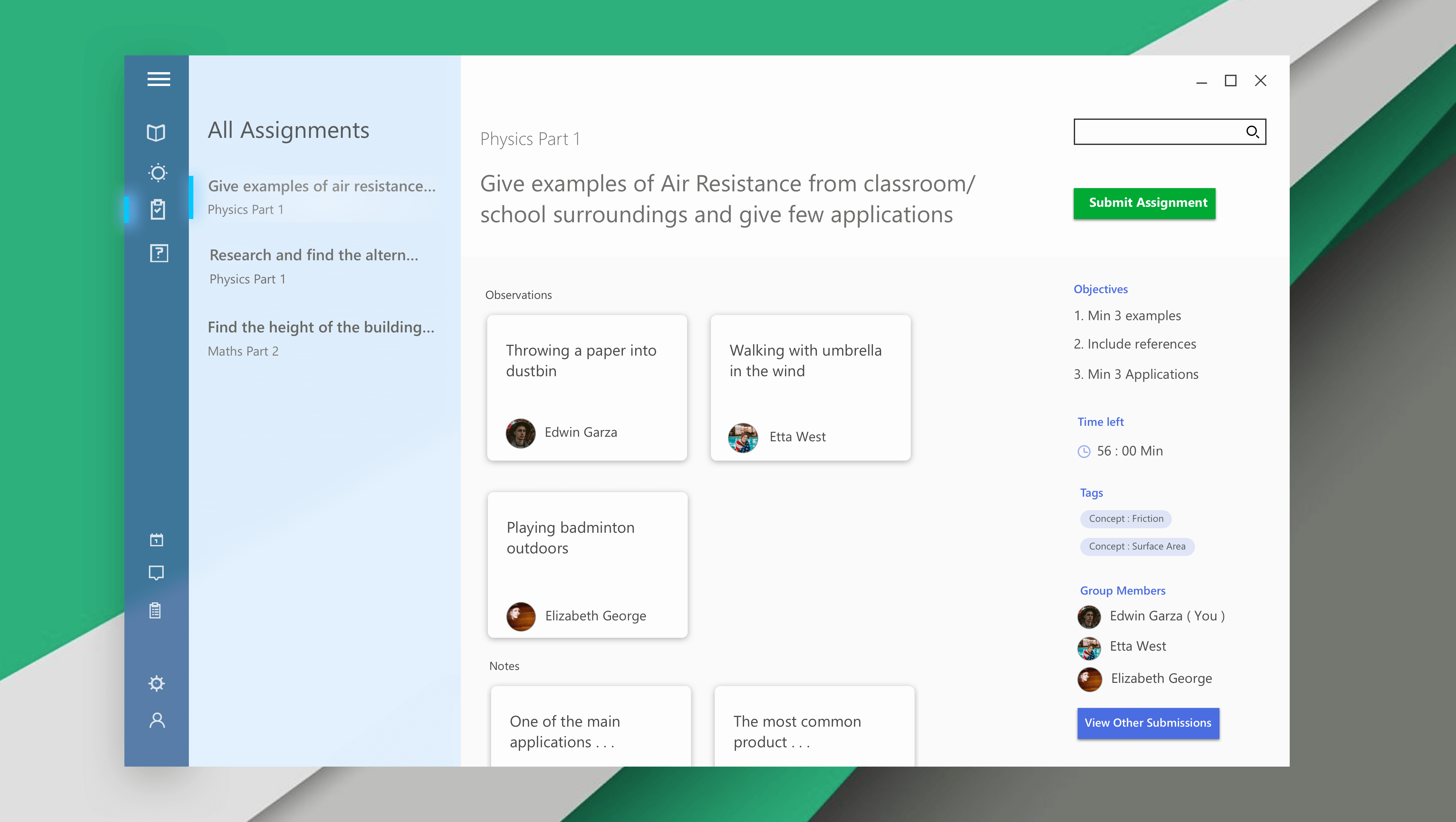 Since the assignment is set up in a classroom, students can come together and discuss the various concepts, experiences and update the observations section. By this, we ensure collaboration is fruitful among the students.