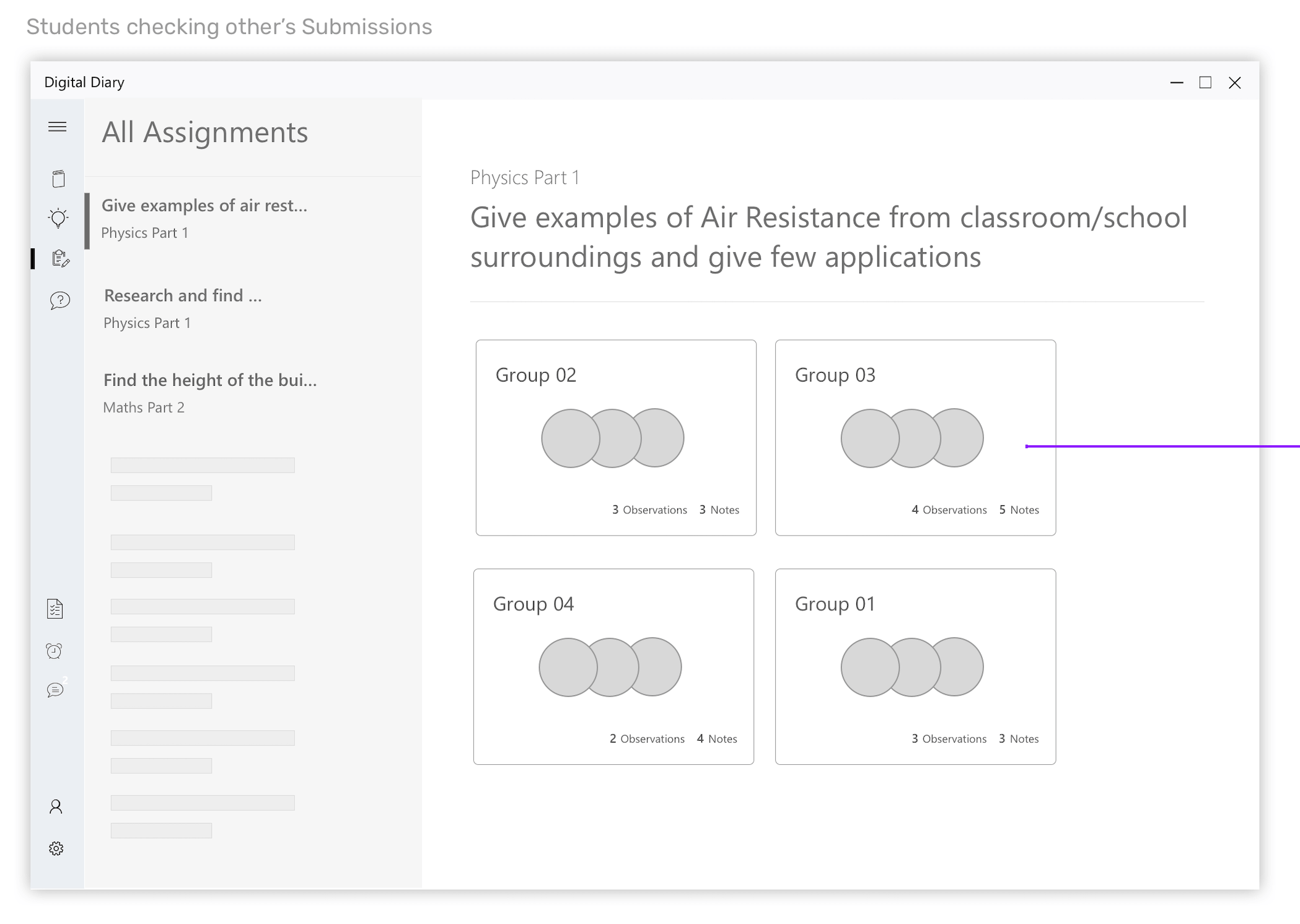 There are di!erent groups who submitted for the assignment. They are sorted by the chronological order. Those submitted first will appear first on the page.