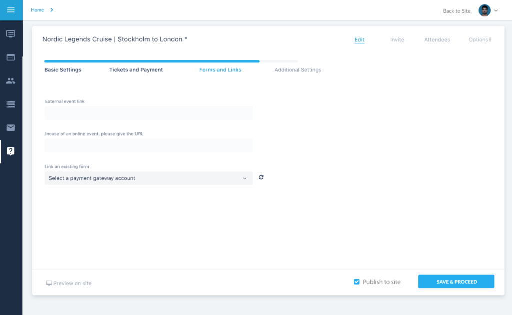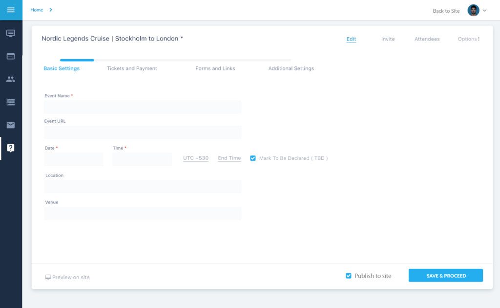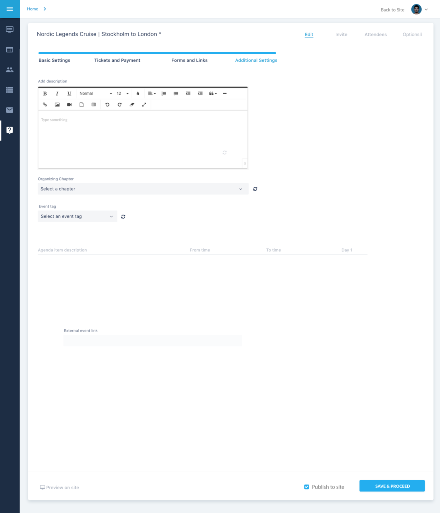 The first step will have all the mandatory fields, by which an event can be created quickly and published onto the site.