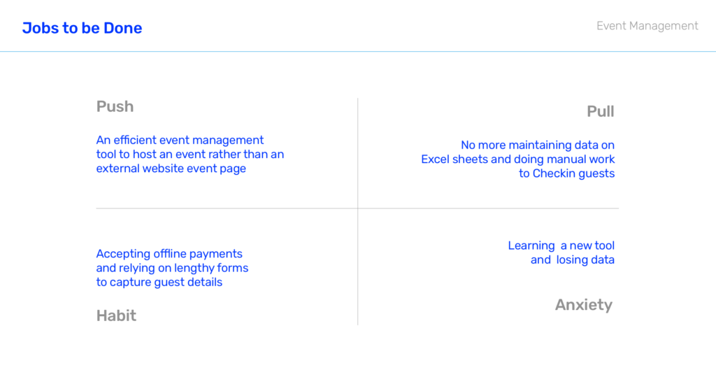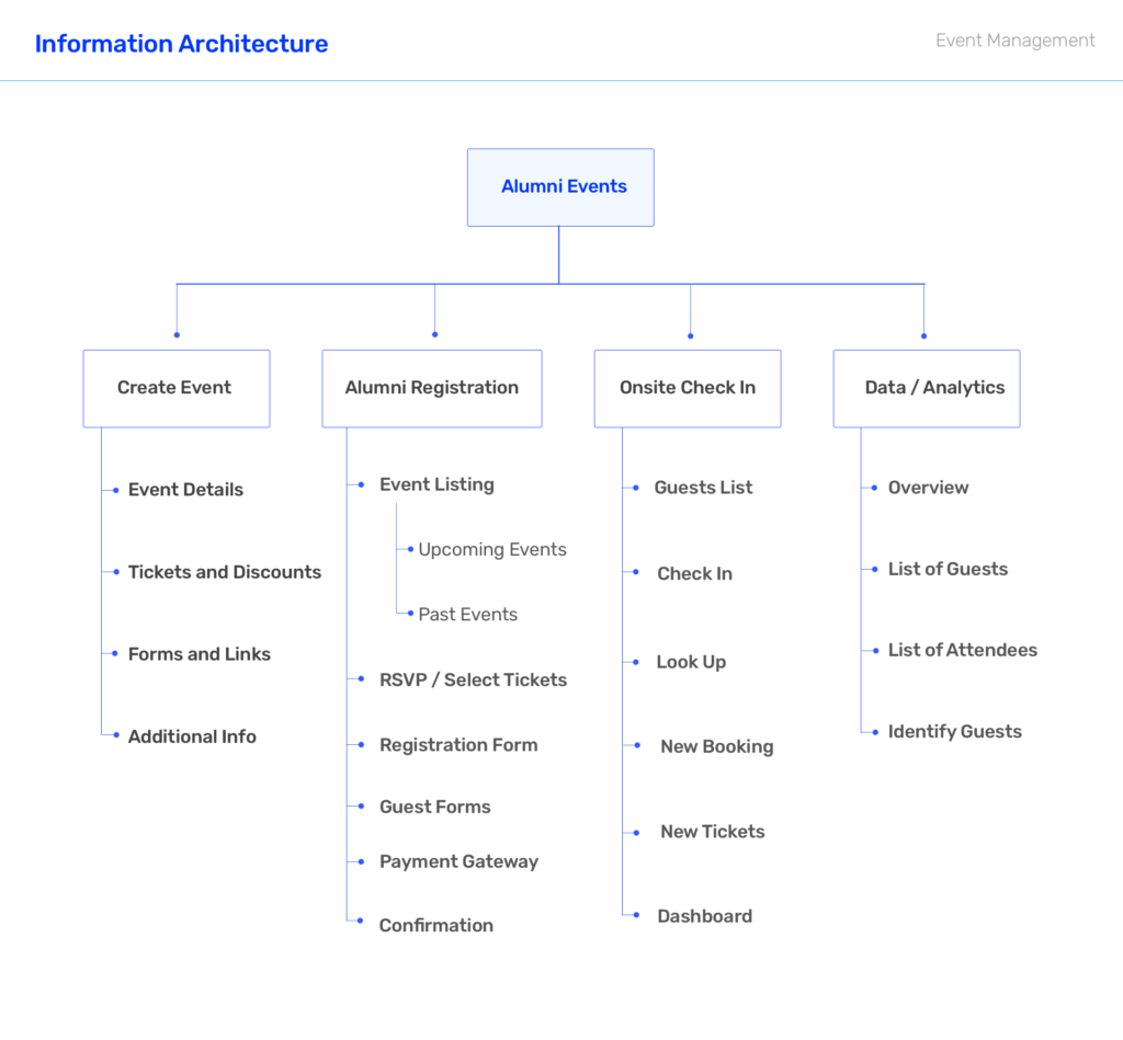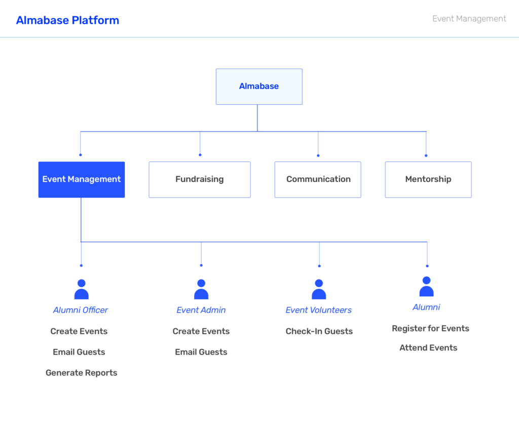 User research is not considered as one-off or one-time process but a continual observation, interaction with all stakeholders. We constantly interact with the customers as weekly customer calls, collect their feedback, track usage and also customers send requests on top of the existing features. Collating all the feedback we gain deep insights and behavioral patterns to build the product pipeline. After few conversations with Alumni Officers from multiple institutions and from some of the first-hand experiences at such events, we gathered sufficient insights into the Event Management Module.