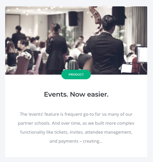 The ‘events’ feature is a frequent go-to for so many of our partner schools. And over time, as we built more complex functionality like tickets, invites, attendee management, and payments – creating an event got complex and often confusing. We decided to fix that.
