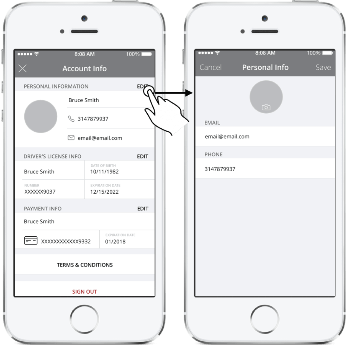 6. User should be able to edit personal,license and payment information