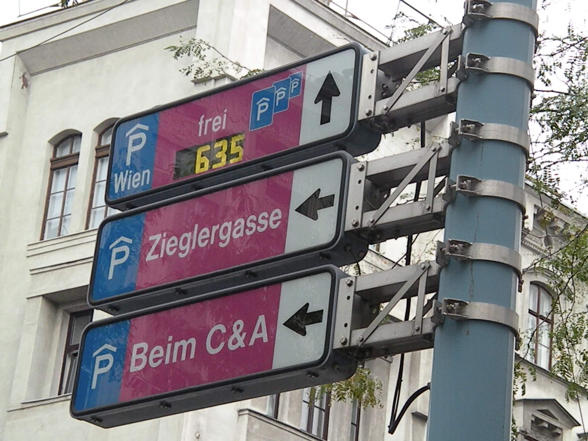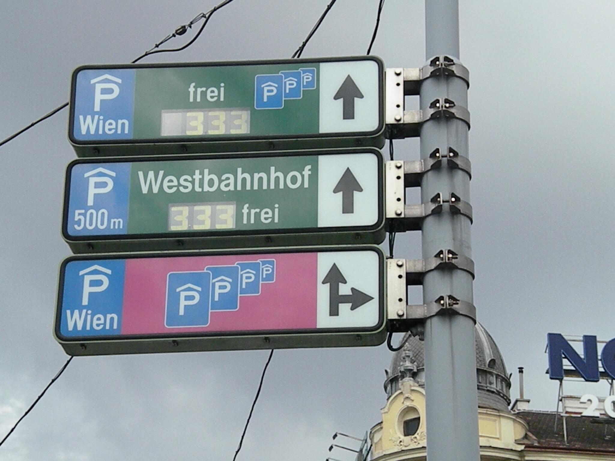 Information about parking spaces is shown on the board having a digital display to show the status and availability.