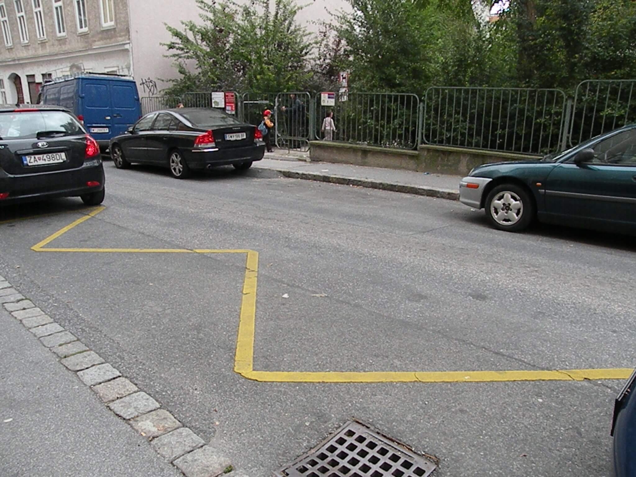 A uniform convention is followed throughout the city to denote NO PARKING in front of the doorway.
