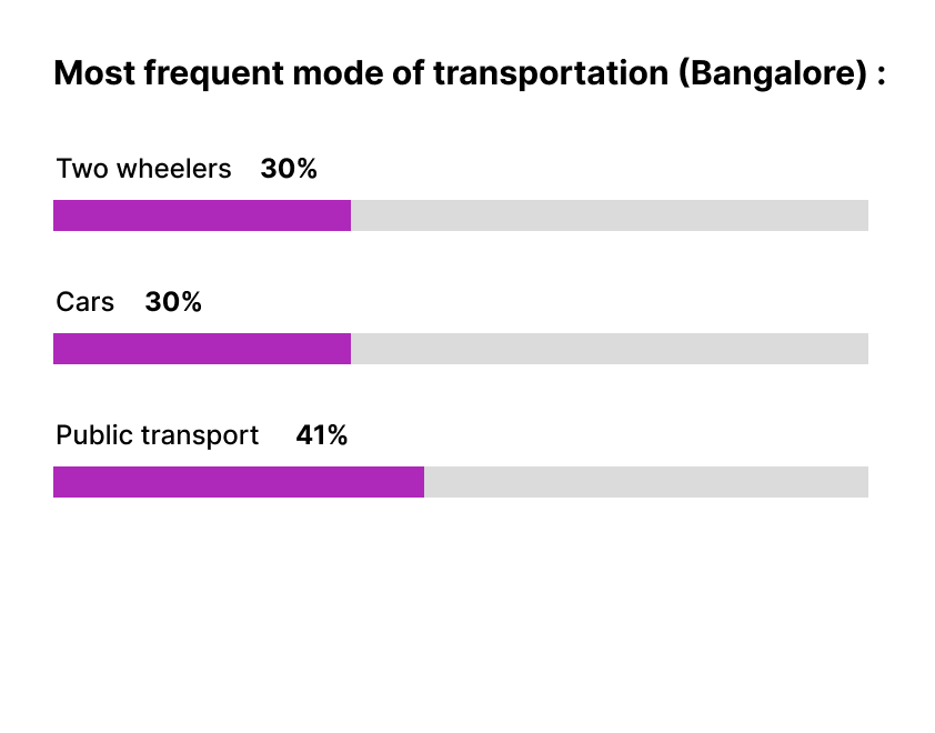 Although most of the commuters take public transport modes like metro and bus, still a higher share prefers two wheelers and four wheelers.
