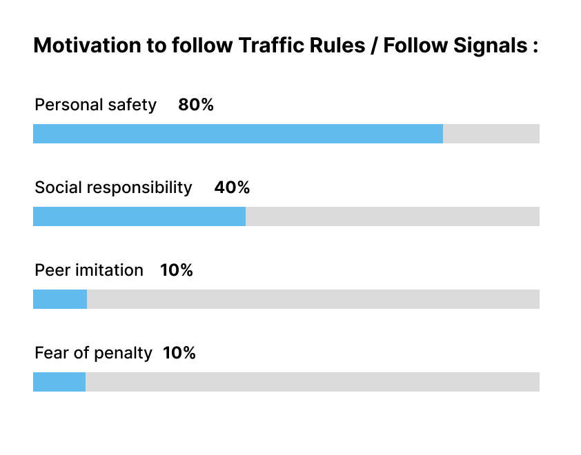 Few respondents react as per the situation. To some extent fine/penalty also helps people follow or obey traffic rules.